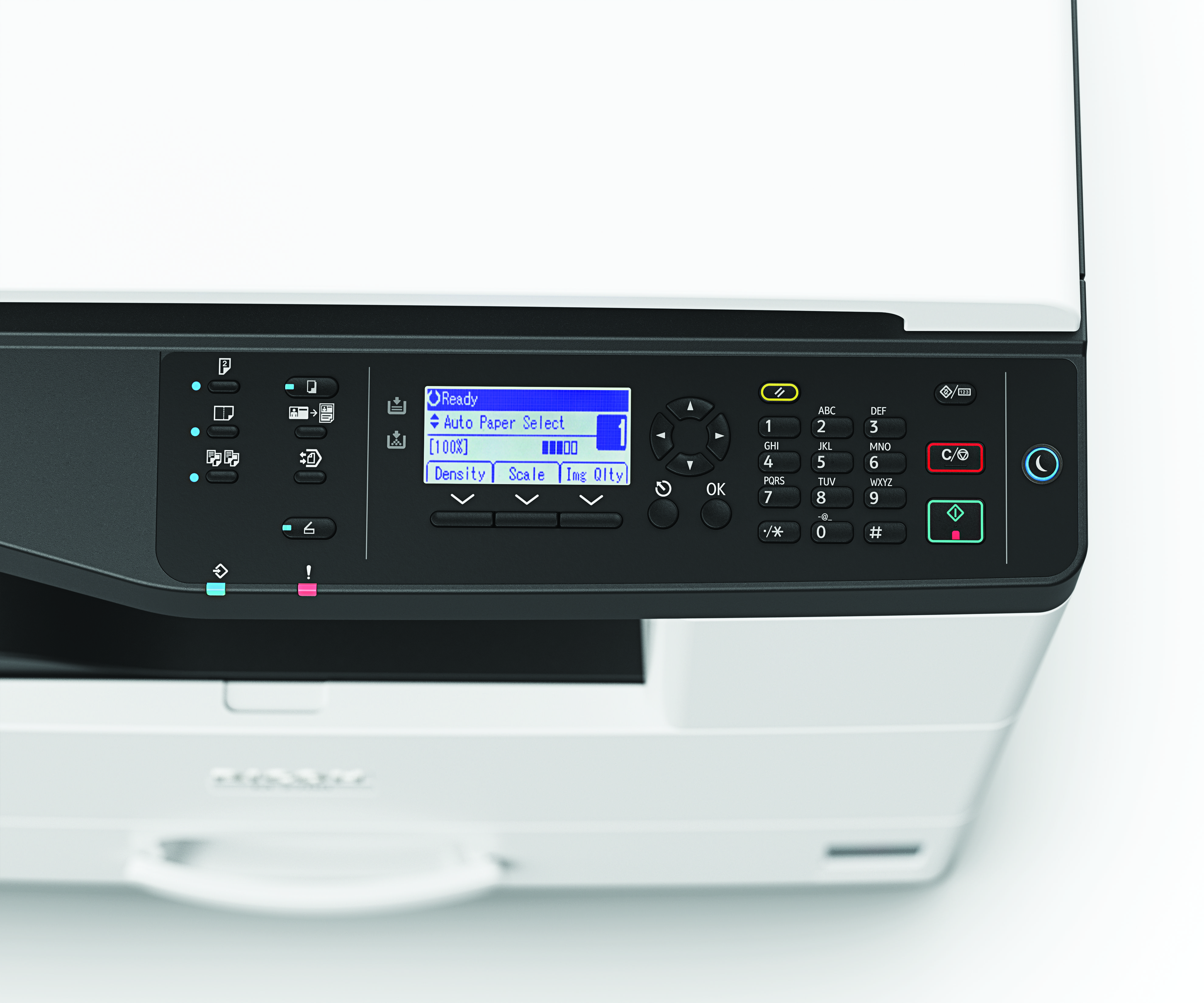 - Comes with a 500-sheet paper tray and 100-sheet bypass tray as standard, with the option to expand up to 1,600 sheets, handling various paper sizes and types.